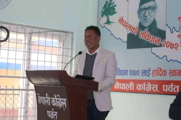 देशमा अफ्ठयारो स्थितीमा नेपाली काँग्रेसका सभापति एवं प्रधानमन्त्री शेरबहादुर देउवाको नेतृत्वको सरकारले शान्तिपूर्ण र सौहार्दपूर्ण तबरले निर्वाचन सम्पन्न गरेको काँग्रेस पर्वतले जनाएको छ । नेपाली काँग्रेस पर्वतका सभापति यूवराज जोशी र सचिव गुप्तनिधी शर्माद्धारा हस्ताक्षरित विज्ञप्तीमा स्थानीय तह निर्वाचन सफलता पूर्वक पर्वतमा सम्पन्न भएको जनाईएको छ । निर्वाचनको क्रममा भएको सहयोग, सहकार्य र उत्साहका प्रति पार्टी आभारी भएको जोशी र शर्माले जनाउनुभएको छ । जिल्ला सभापति यूवराज जोशीले पर्वतका सात स्थानीय तहमध्ये पाँच स्थानीय तहको प्रमुख जित्न सफल भएको तथा गठबन्धनका बिचमा गम्भिर रुपमा छलफल गरि गठबन्धन लाई विश्वासमा लिएर निर्वाचनमा साझेदारी गर्नु आँफैमा सफलता रहेको जनाउनुभयो । जोशीले लोकतान्त्रिक पद्धति लाई संस्थागत र रक्षा गर्न योगदान गरेका नेपाली काँग्रेसका अग्रज नेताहरुलाई स्मरण गर्नुभएको छ । यस्तै लोकतन्त्र, आवधिक निर्वाचन तथा संविधानको रक्षार्थ योगदान गर्ने नेता तथा कार्यकर्ताहरुलाई सम्मान व्यक्त गरिएको छ । विगतमा कहिँकतै कमि कमजोरी रहेका भए त्यसलाई वस्तुनिष्ठ समिक्षा र हार्दिकतापूर्वक संवाद गर्दै सहकार्यलाई निरन्तरता दिने नेपाली काँग्र्रेस पर्वतले प्रतिबद्धता व्यक्त गरेको छ । निर्वाचनको अवधिभर खटिएका निजामती कर्मचारी, निर्वाचन संग सम्बन्धित निकाय, सुरक्षाकर्मी,पत्रकार, शिक्षक, विद्यार्थी, पेशागत संघसंस्थालाई पनि पार्टीले आभार व्यक्त गरेको विज्ञप्तीमा उल्लेख छ ।